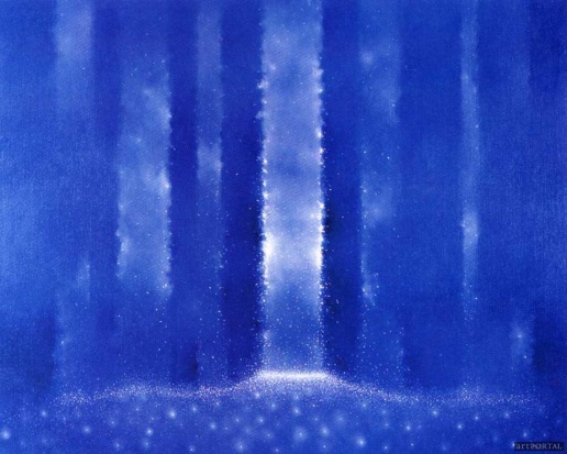 (A képet jobb minőségben meg lehet tekinteni az artportal.hu oldalon akár felnagyítva is) Nézzük csak a festményt: megsejteti a mennyország fényét, ami a távolban van, és mintha egy függöny takarná el. De a függöny előtt, itt a földön (és látjuk az ívét a földnek): nem egybefüggő fény és öröm és boldogság van, csak pontokban. Rájövünk, hogy földi életünk örömei, gyönyörei is Isten ajándékai, a túlvilági boldogság kóstolói. A nagy fényből kis fények, fénypontok jutnak életünk földi szakaszára. Hálásak vagyunk Istennek ezekért a földi boldog pillanatokért, de nem akarjuk felcserélni ezt azzal, ami vár, ami már ránk sugároz! Éljünk ennek tudatában. Életünk fénypontjai a szeretteink, házastársunk, gyermekeink és minden boldog pillanat. És mindezt Istennek köszönjük. Hálát adunk neked Uram, csodálatos vagy. Csodálatos dolgokat találtál ki nekünk, a földi életre. De annak a tudatában is élnünk kell, hogy akkor is értelme lesz az életemnek, ha életem egy-egy fénypontja kimúlik, mert tudom, hogy a tökéletes fény felé haladok!